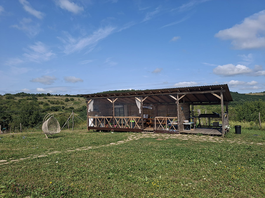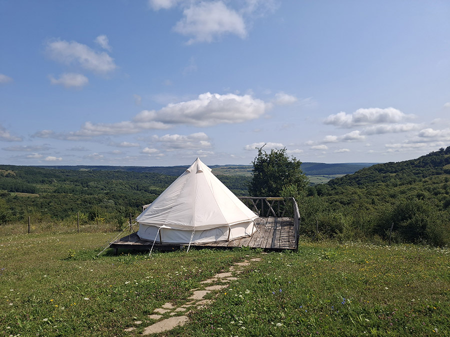 Z pola namiotowego rozciąga się widok na zielone wzgórza pustkowi Mołdawskich
