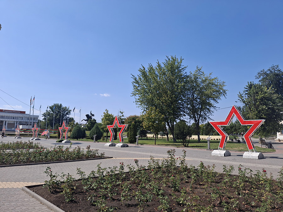 Na zwiedzanie Nadniestrza można się umówić z mieszkającym tam panem Rostyslavem, który jest znany wśród Polaków odwiedzających Nadniestrze i biegle posługuje się językiem polskim. I właśnie z panem Rotyslavem spotkała nas pierwsza miła sytuacja. Akurat, gdy zastanawiamy się czy nie parkujemy na zakazie, natykamy się na wspomnianego przewodnika. Poznajemy go ze zdjęcia na facebooku. Oprowadza właśnie po Tyraspolu małżeństwo z Polski. Zapytany o to czy można w tym miejscu parkować, od razu przechodzi do tego co zobaczyć, którą drogą najlepiej jechać i co kupić na pamiątkę w Sheriffie.