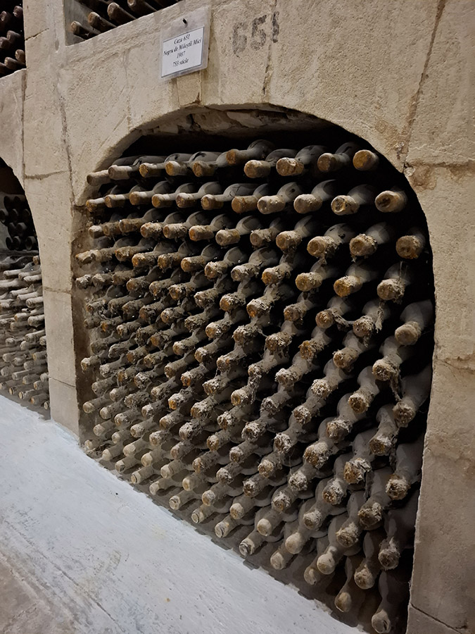 Na terenie kompleksu stoją dwie instagramowe fontanny, z których płynie białe i czerwone wino (a tak naprawdę zabarwiona woda). Milesti Mici zwiedza się meleksami zatrzymując się w kilku punktach, po których oprowadza przewodnik. Pani przewodnik opowiada różne ciekawostki, np. że wielkie beczki po winie czyszczą niskie i drobne kobietki, które wchodzą do środka. Tempo zwiedzania odpowiada nam bardziej niż w Cricova. Jest więcej czasu, żeby sobie chociażby pooglądać pokryte grubą warstwą kurzu leżakujące zbiory butelek.