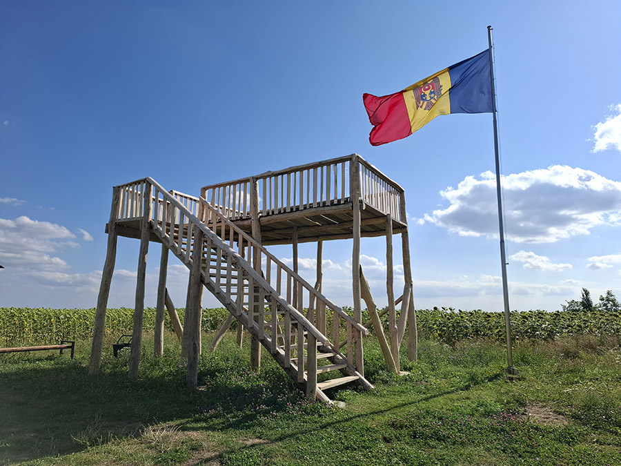 Samochód zostawiamy pod sklepem i ruszamy na pieszą wędrówkę. Najpierw drogą przez wieś, a potem przez las i pola. Po drodze mijamy studnię. Szczyt jest płaski i przypomina nam raczej spacer niż trudną wspinaczkę. Wchodzimy jeszcze na drewnianą wieżę widokową by być w jak najwyższym miejscu. Tuż obok powiewa mołdawska flaga.