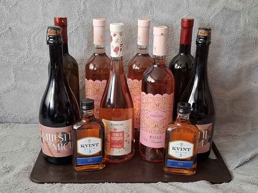 Wina, alkohole oraz inne różności przygotowywane przez rodzinę posiadają własnoręcznie wydrukowane etykiety