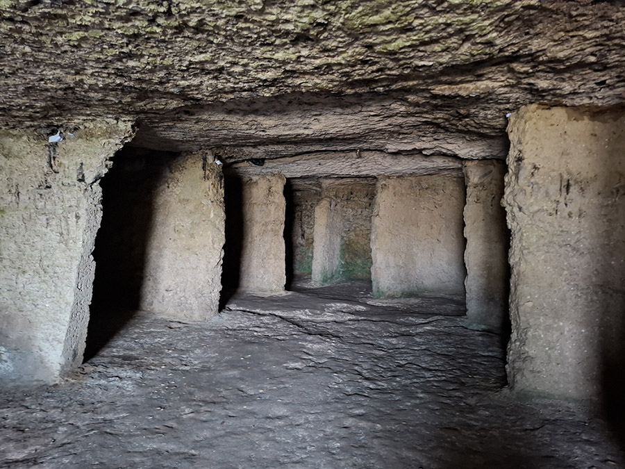 W tunelach Milesti Mici na ścianach oraz suficie widać pozostałości po procesie ich drążenia