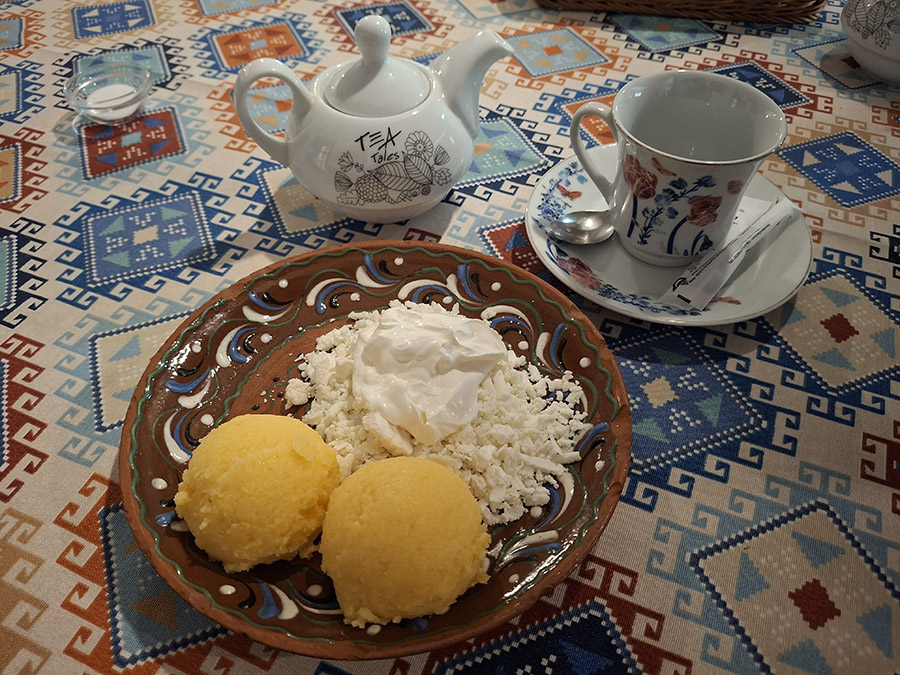 Na obiad zatrzymujemy się w Eco Resort, o którym czytaliśmy na kilku blogach turystycznych. To restauracja urządzona w sielskim stylu i oferująca tradycyjną kuchnię mołdawską. Skosztujemy tu mamałygi (Mołdawia to kraj kukurydzy), placinte czy domowego wina. My zamawiamy mamałygę z owczym serem i śmietaną, do tego ziołową herbatę zaparzaną w czajniczku. Za obiad płacimy niecałe 20 zł na osobę.
