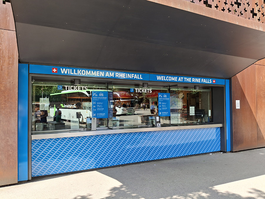 Bilety na wodospad kupujemy w kasie (5 franków za jeden bilet). Koszt parkingu to 5 franków za pierwszą godzinę, za każdą kolejną godzinę 2 franki. Obok kasy znajduje się sklep z pamiątkami i bezpłatna toaleta. Wcześniej czytaliśmy, że wodospad można zobaczyć z bezpłatnych, ale nieco oddalonych punktów widokowych. Naszym zdaniem warto jest jednak kupić bilety wstępu.