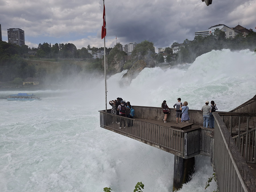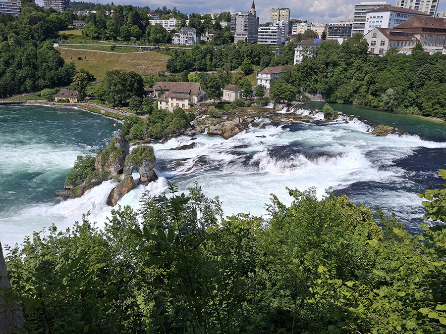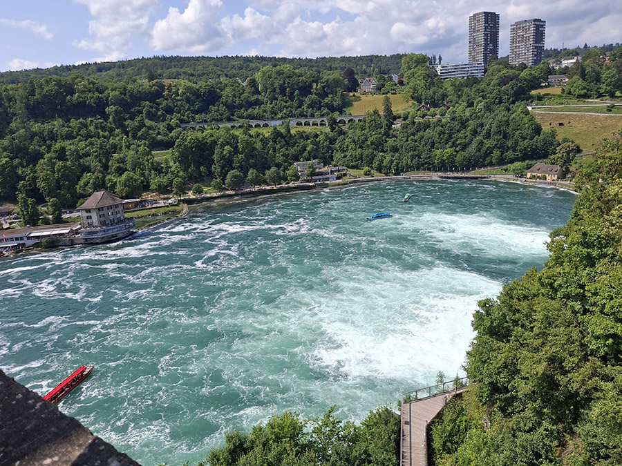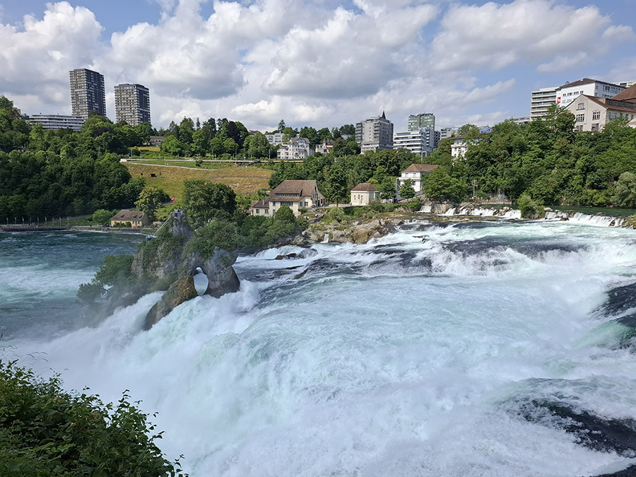 Od przekroczenia granicy dzieli nas już tylko 3 km do Rheinfall. To największy pod względem przepływu wodospad Europy. Położony jest na przełomie Renu w miejscowości Neuhausen am Rheinfall.
