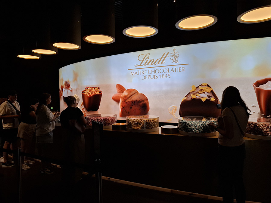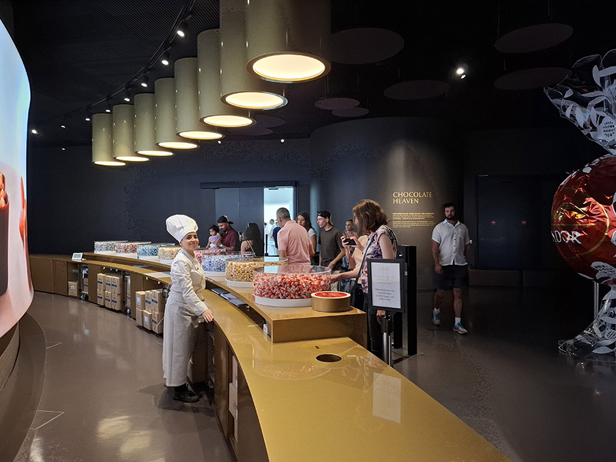 W jednej z sal można obejrzeć reklamy czekolad Lindt, np. z udziałem Rogera Federera. Jest tu też ogromny globus. Gdy nim kręcimy i wybieramy Polskę możemy przeczytać dane statystyczne dotyczące spożycia czekolady przez Polaków. Całe muzeum jest nowoczesne i pełne interaktywnych eksponatów.