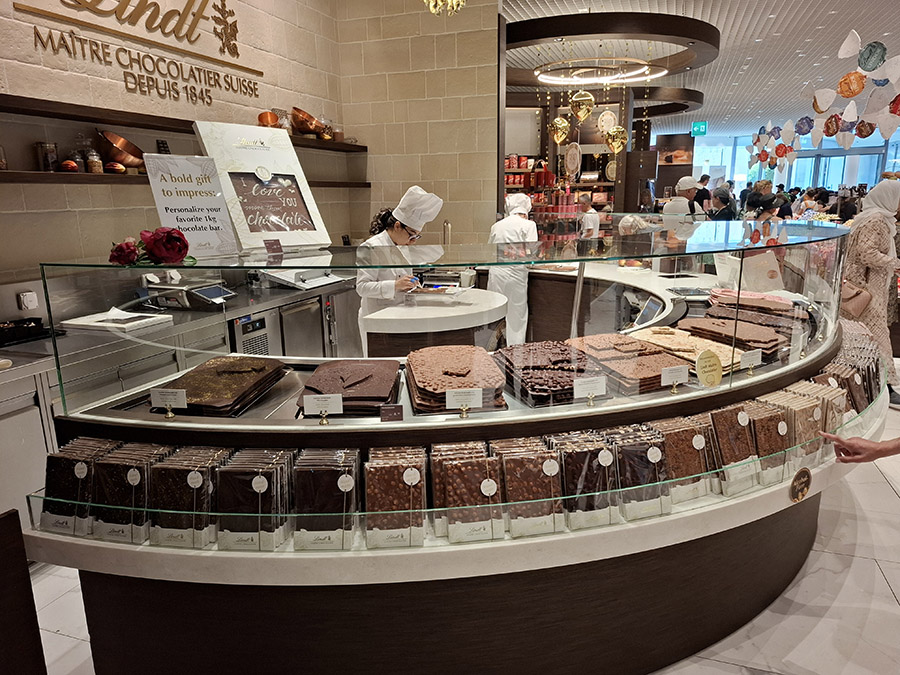 Po wizycie w muzeum każdy może skorzystać z usług kawiarni lub zrobić zakupy w sklepie, w którym półki uginają się pod niezliczonymi ilościami i rodzajami czekoladek i bombonierek od Lindt. Niewątpliwie jest to największy sklep czekoladą w jakim do tej pory byliśmy. Spotkaliśmy też smaki czekoladek Lindt jakie w Polsce nie są dostępne: miętowe, kokosowe czy matcha.