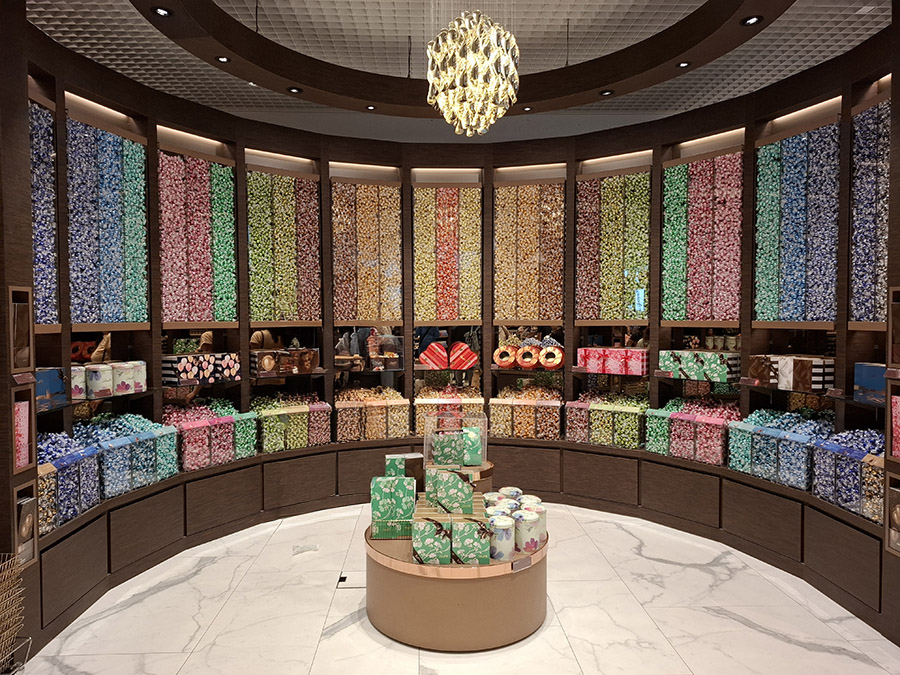 Są też dozowniki, z których można pobrać różne próbki czekolad do zjedzenia