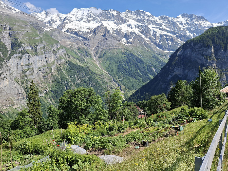 W dolinie Lauterbrunnen zostawiamy samochód na parkingu i ze stacji Stechelbarg wjeżdżamy prawdopodobnie najbardziej stromą kolejką linową na świecie do alpejskiej wioski Murren. Stamtąd schodzimy do innej wioski: Gimmelwald. To są właśnie widoki w Szwajcarii na jakie liczyliśmy.