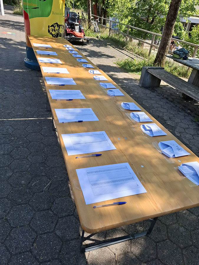 Z Blausee jedziemy na kolejny kemping. Szybko rozbijamy namiot, bo tego dnia czeka nas jeszcze trening orientacji sportowej pod nazwą 2. Berner Abendlauf w miejscowości Rubigen zorganizowany przez klub OlNorsk. W Szwajcarii biegi na orientację są bardzo popularne. To stąd pochodzą biegacze ze światowej czołówki w tej dyscyplinie sportu. Do wyboru jest kilka dystansów. Marcin biegnie najdłuższy i najtrudniejszy dystans mierzący w wariancie optymalnym 6,1 km i 19 PK z przewyższeniem 100 m. Ania wybiera trasę 3,2 km i 12 PK. Najpierw w biurze zawodów biegacze sami wybierają swoje minuty startowe i wpisują się na odpowiedniej liście. W ten sposób od godz. 17:15 do godz. 19:30 co minutę kilka osób wybiega na trasy z boksów startowych oddalonych o 1,1 km od biura zawodów.