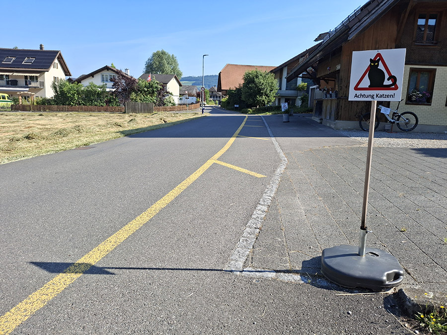 Po drodze na Kemping mijamy dwa znaki przestrzegające kierowców "Uwaga kot!"