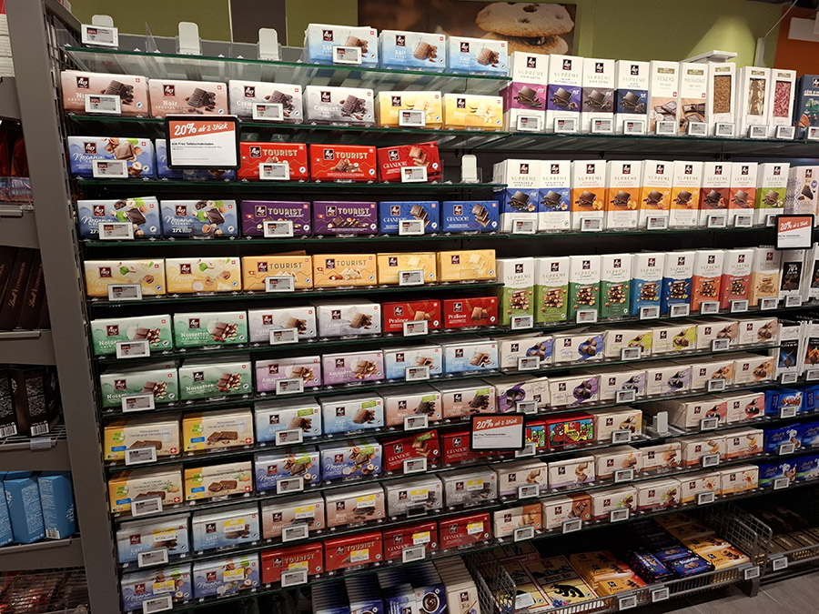 Rano robimy zakupy w sklepach sieci COOP. Kupujemy m. in. zapas szwajcarskich czekolad Cailler. Będą na pamiątkę i na prezenty dla rodziny i przyjaciół. Cailler to najstarsza fabryka czekolady w Szwajcarii. Można ją zwiedzić, ale z braku czasu zostawiamy to już sobie na następną wycieczkę do tego pięknego kraju. Tymczasem podążamy dalej, w kierunku granicy z Liechtenstein.