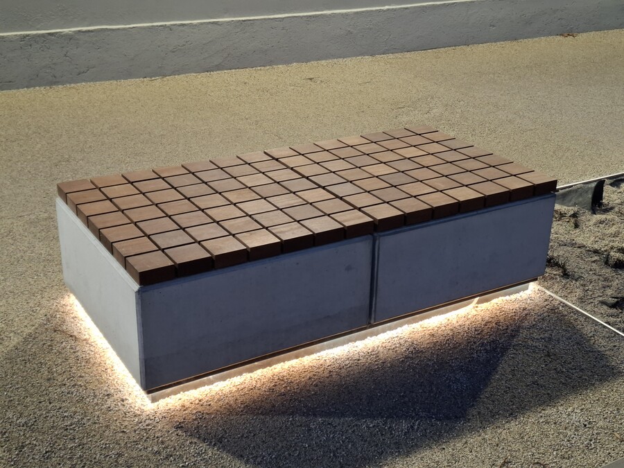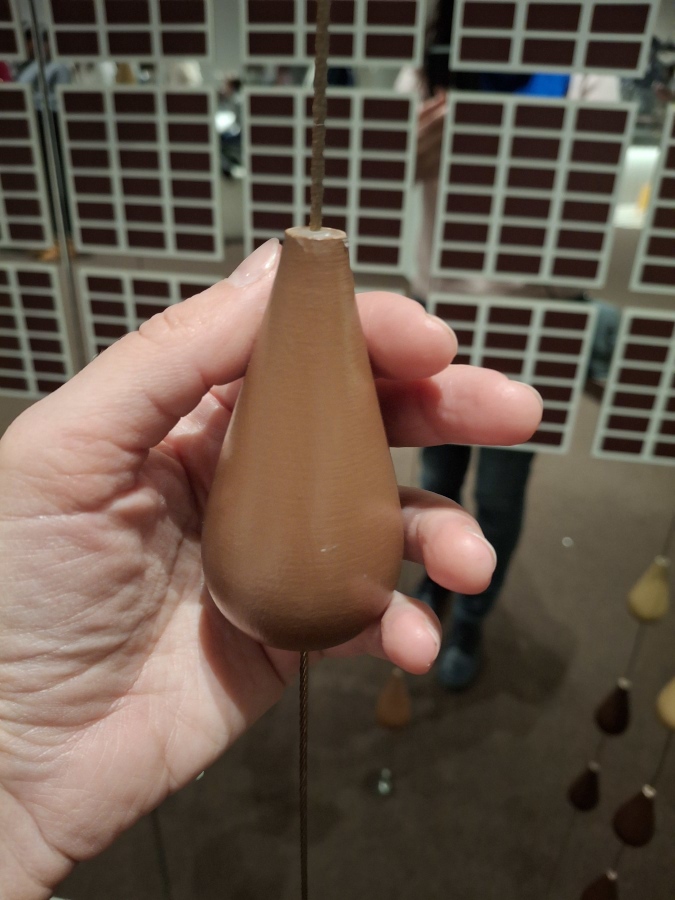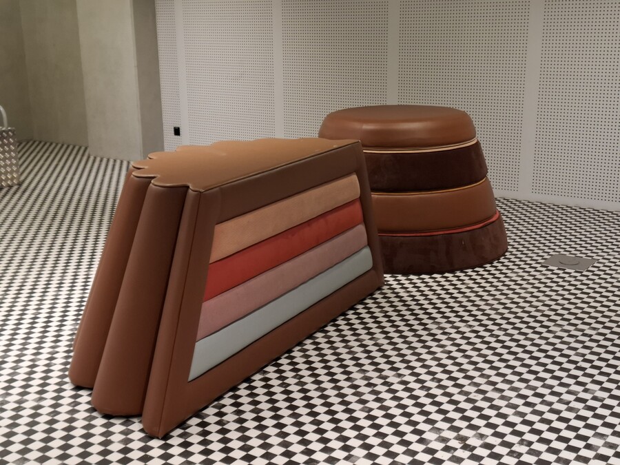 Przed muzeum znajdują się ławki w kształcie czekoladek