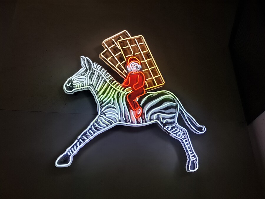Jest też neon przedstawiający chłopca na zebrze, jest to kreacja stworzona w 1926 roku na zlecenie Jana Wedla przez Leonetto Cappiello
