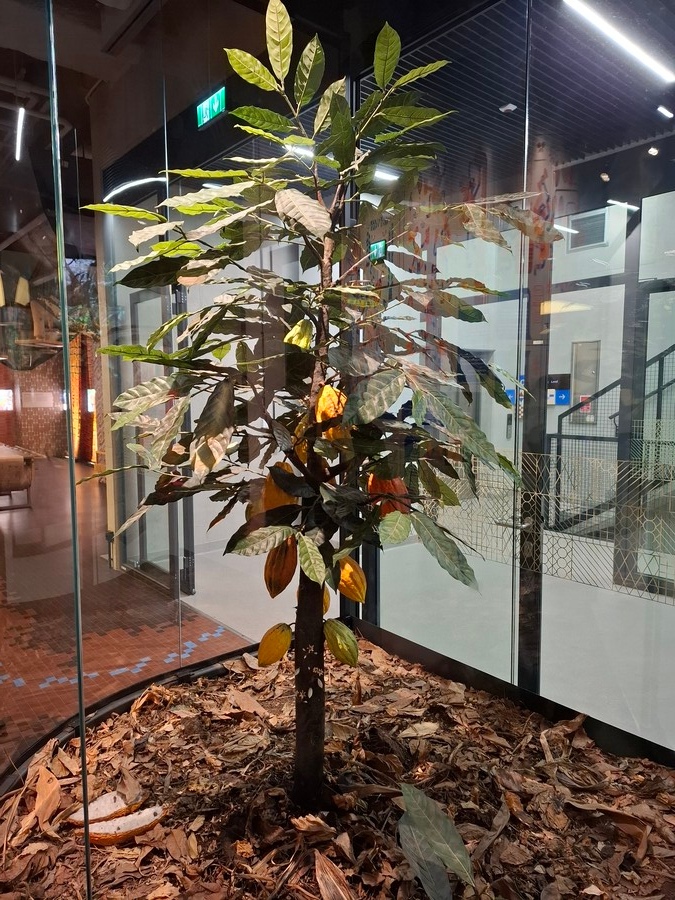 W pierwszej sali znajdziemy inscenizację dżungli wraz z drzewem kakaowca. Dowiemy się tutaj o pierwszych procesach jakim poddawane jest ziarno kakaowca czyli fermentacja, suszenie, prażenie oraz mielenie. Możemy też spróbować mielenia ziaren oraz skosztować nibsów, czyli prażonego ziarna kakaowca! W sali znajduje się też duża mapa, z której dowiemy się skąd importuje się najwięcej ziaren. W muzeum wszędzie w powietrzu unosi się zapach czekolady.