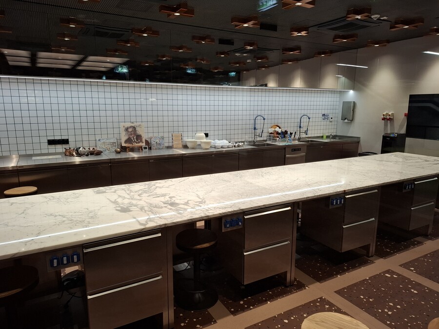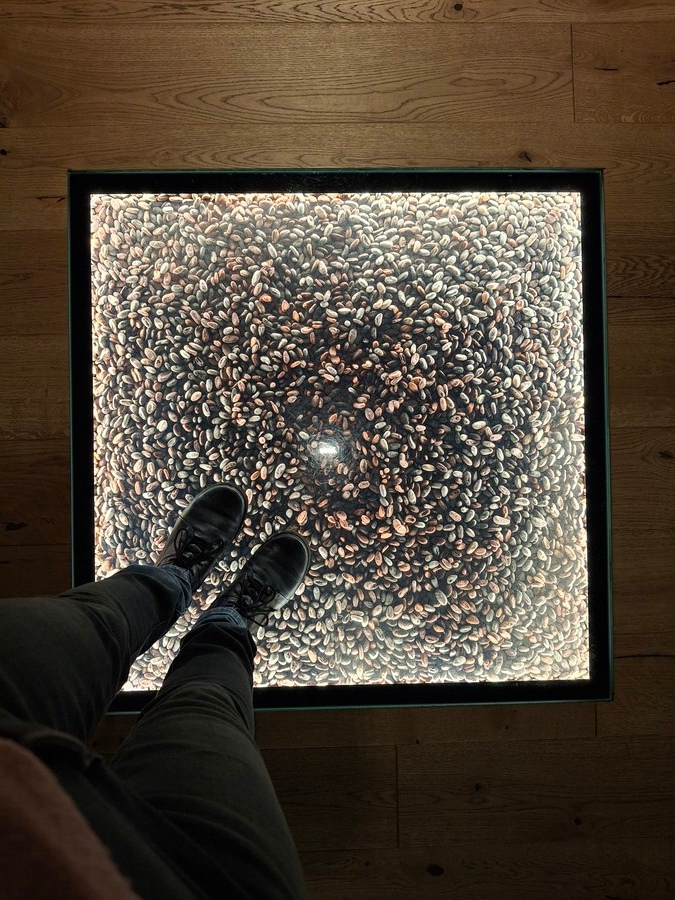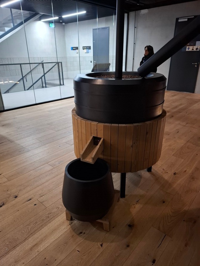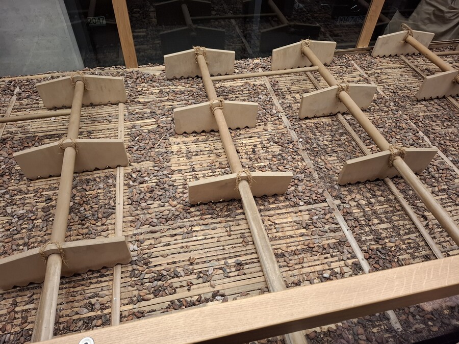 Na kolejnym piętrze znajduje się interaktywna linia produkcyjna, gdzie możemy zobaczyć cały proces przetwarzania ziaren aż do powstania czekolady. Oprócz tego co mówi przewodnik w muzeum znajdują się ekrany z pokazami oraz wiele opisów. Dowiemy się tutaj o dalszych procesach obróbki kakao takich jak konszowanie, hartowaniem, formowanie.