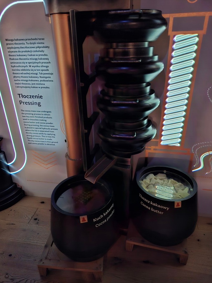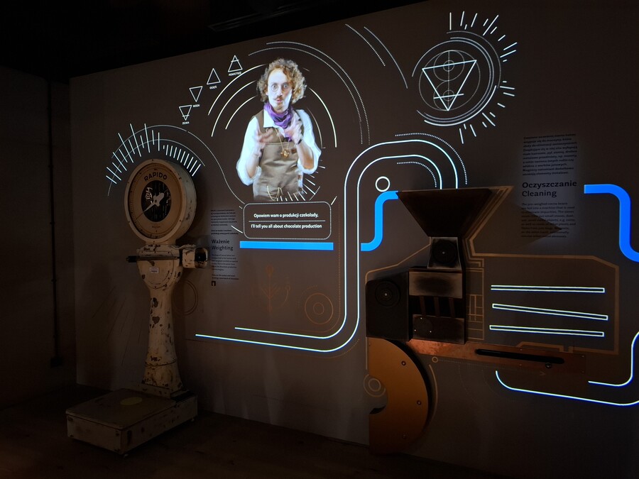 ...gdzie zobaczymy maszyny wraz z opisami oraz projekcjami filmowymi o każdym momencie przetwarzania ziaren w czekoladę.