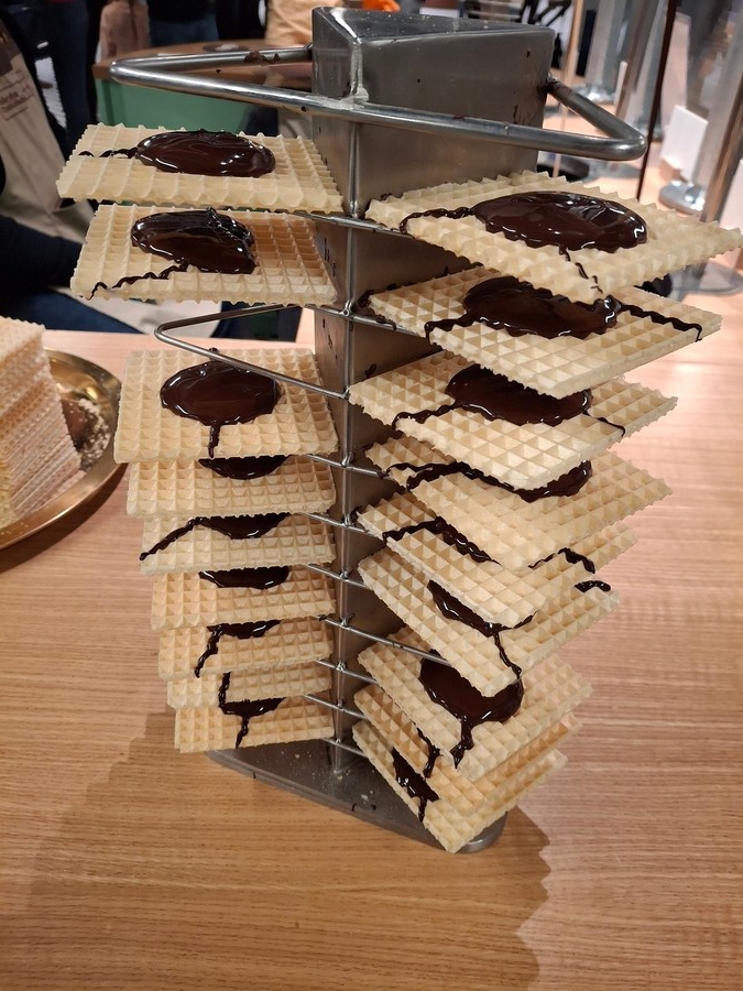 W muzeum czekolady nie mogło zabraknąć możliwości kosztowania słodkich wyrobów! Do wyboru do degustacji płynna czekolada mleczna, gorzka oraz karmelowa.