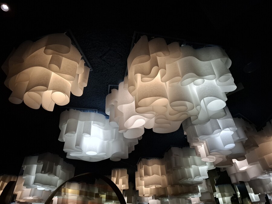 Na suficie wiszą lampy w kształcie "Ptasiego Mleczka"