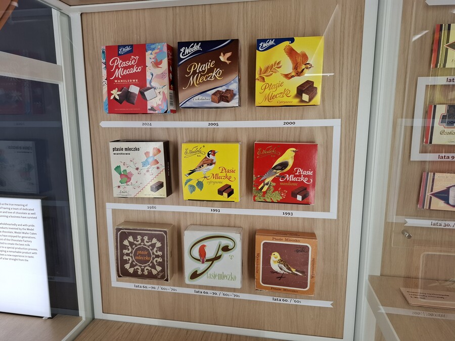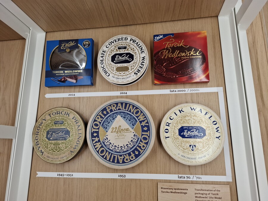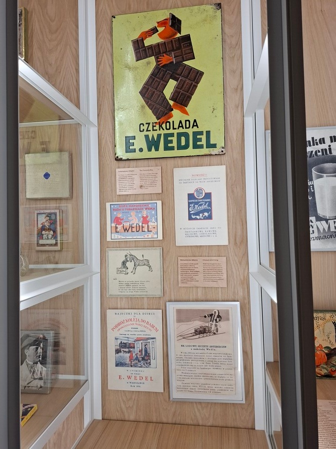 Ostatnia sala mieści archiwalne plakaty i opakowania. Widzimy tutaj jak na przestrzeni lat zmieniał się wizerunek firmy oraz styl produkowanych opakowań. Odkrywamy, że niektóre z nich są produkowane w prawie nie zmienionej formie od wielu lat. Widać, że firma Wedel troszczy się o swoje tradycje.