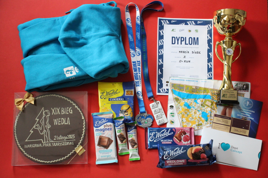 Każdy uczestnik zawodów Biegu Wedla mógł liczyć na słodki upominek - voucher na kubek gorącej czekolady do wykorzystania w Pijalniach Czekolady Wedla oraz produkty Wedla. Zwycięzcy poszczególnych kategorii otrzymają puchary, pamiątkowe bluzy oraz "Torcik Wedlowski", który ozdobiony jest ręcznie wykonaną grafiką przygotowaną specjalnie na tę edycję wydarzenia! Dodatkową nagrodą i nowością w tym roku jest podwójny voucher uprawniający do zwiedzania, otwartego w ubiegłym roku, muzeum Fabryki Czekolady E. Wedel.