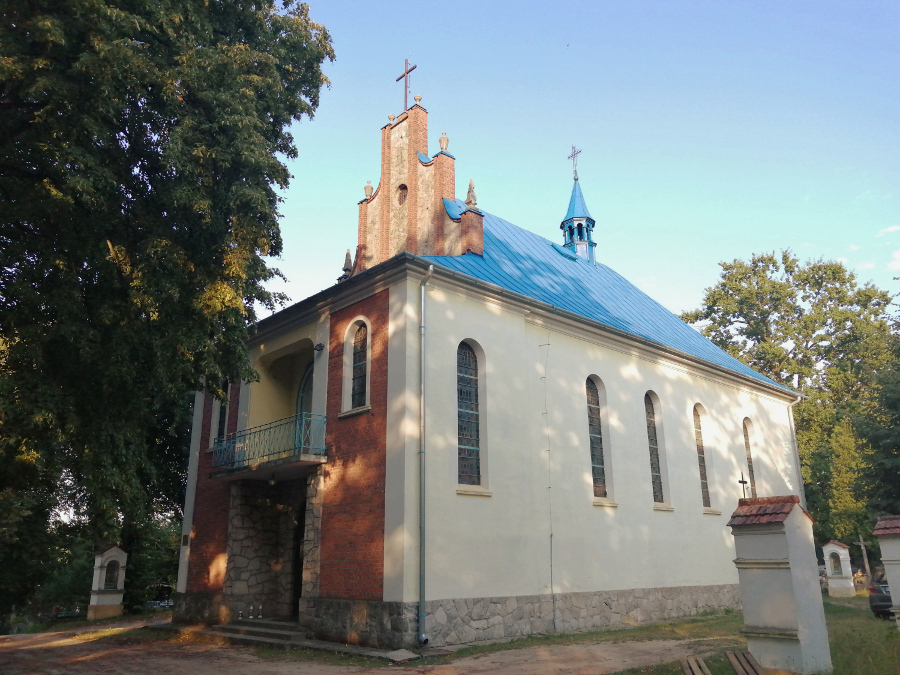 Kościół budowany był w tym miejscu kilka razy. Po raz pierwszy drewniany kościółek wybudował kupiec z Leżajska, który tratwą spławiał drewno Sanem do Wisły. Drugi, murowany, został zbudowany przez Franciszkę Pawłowską po tym jak objawiła się jej Matka Boska. (...)