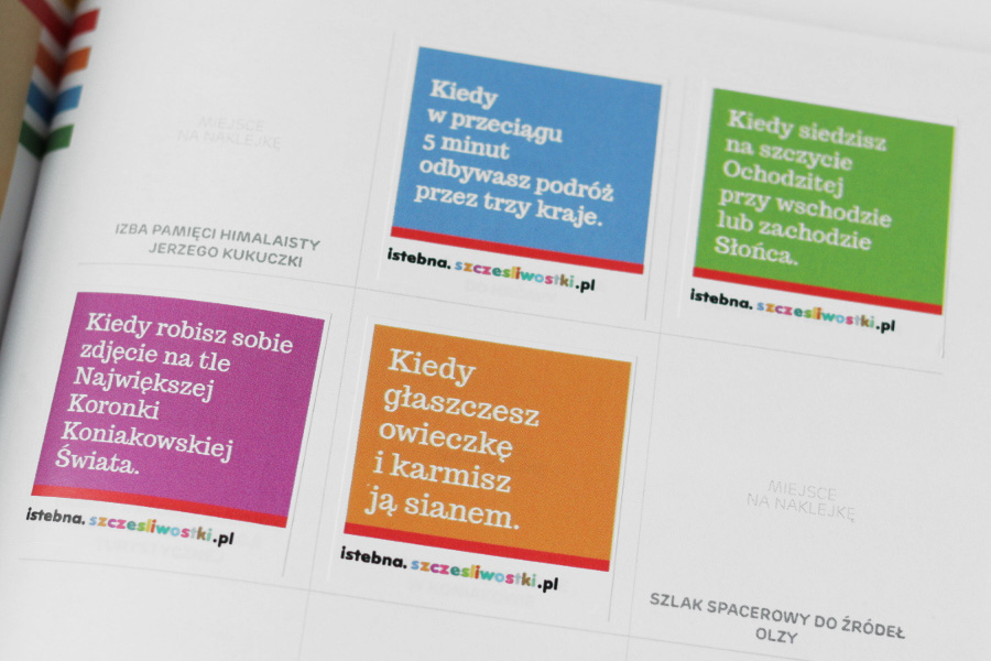 Specjalną książeczkę odbieramy w Informacji Turystycznej na terenie "Beskidzkiej 5". Zadaniem Poszukiwacza jest odwiedzenie wyznaczonych miejsc na terenie Beskidzkiej Piątki, czyli gmin: Brenna, Istebna, Szczyrk, Ustroń, Wisła, w których przygotowane są „szczęśliwostki” w postaci specjalnie przygotowanych naklejek. (...)
