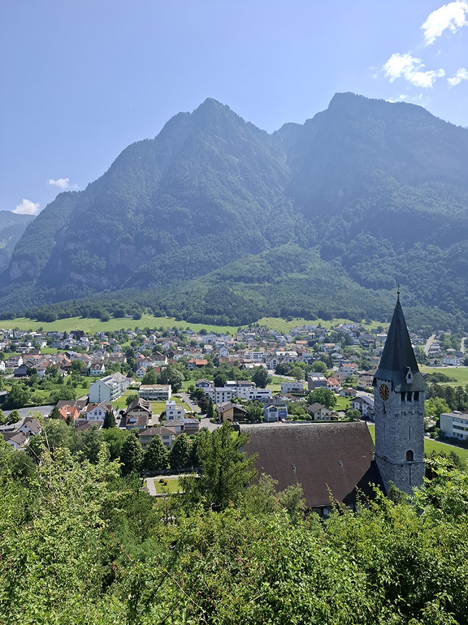 Widok z zamkowego wzgórza na miasteczko Balzers