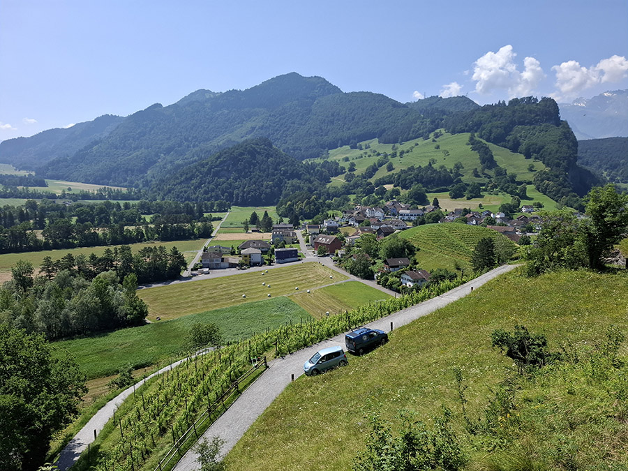 Do Księstwa Liechtenstein wjeżdżamy od południa, w drodze powrotnej ze Szwajcarii. Na początek zatrzymujemy się w miasteczku Balzers, żeby zobaczyć malowniczo położony na skalistym wzgórzu średniowieczny zamek Gutenberg. Jest to jeden z dwóch zamków w Liechtensteinie, które w całości przetrwały do dzisiejszych czasów. Ze wzgórza roztacza się piękny widok na okolice, Alpy oraz na otaczające zamek winnice. Oprócz zamku znajdują się tu także kaplica i ogród różany.