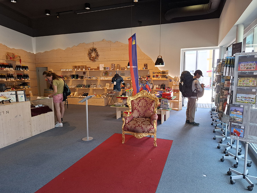 Pierwsze kroki kierujemy do Centrum Informacji Turystycznej. Tutaj za opłatą wynoszącą 3 franki szwajcarskie można otrzymać pieczątkę do paszportu. A także kupić pamiątki, dostać piękne bezpłatne mapki, skorzystać z darmowego internetu lub… zrobić sobie fotkę na tronie i z koroną na głowie.