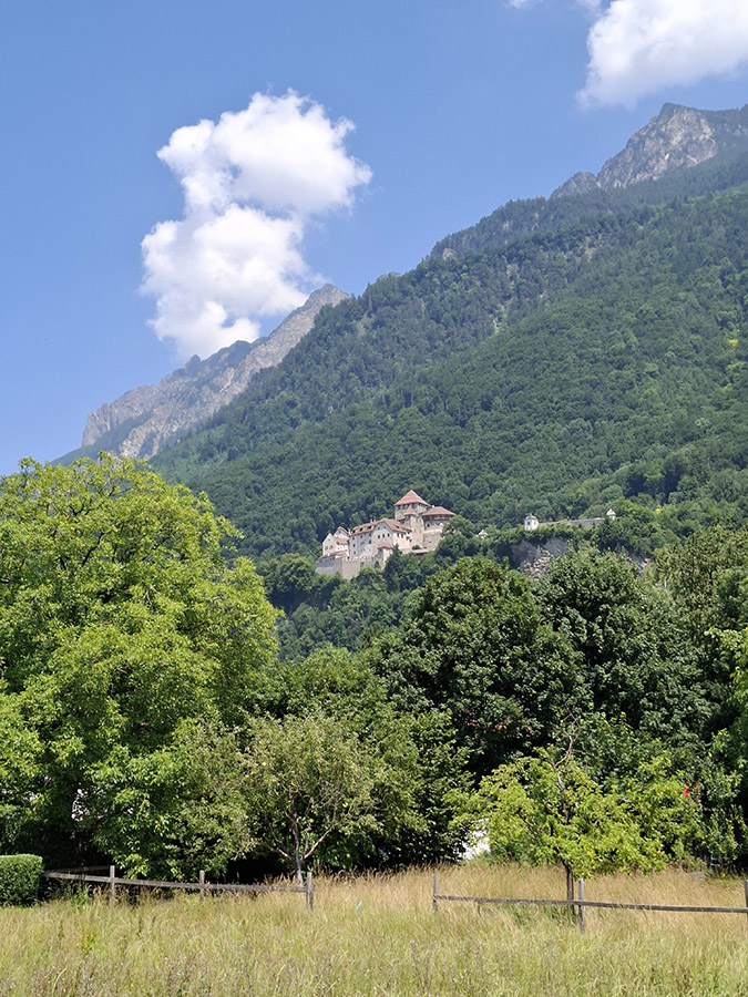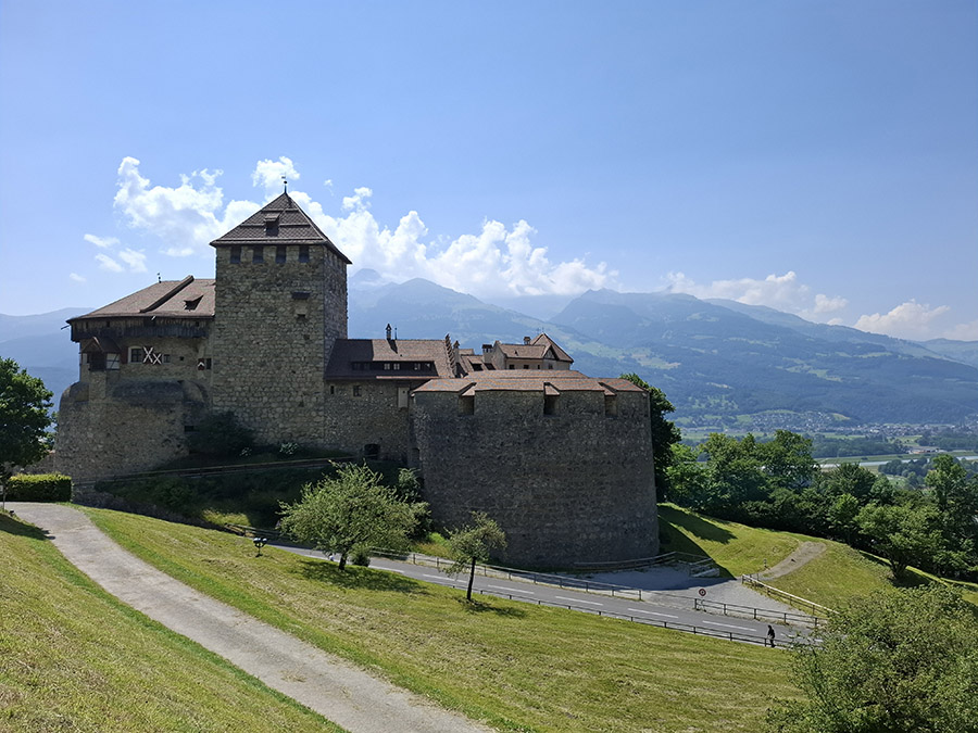 W Vaduz podjeżdżamy jeszcze autem pod górujący nad miastem zamek, ale można tu dojść również pieszo. Warto dotrzeć w to miejsce dla panoramy miasta z góry. Niedaleko zamku jest bezpłatny parking. Sam obiekt można obejrzeć jedynie z zewnątrz, ponieważ to miejsce zamieszkania rodziny książęcej. Raz w roku, 15 sierpnia, w ogrodach zamku Vaduz obchodzone jest narodowe święto Staatsfeiertag, na które zaproszeni są wszyscy mieszkańcy, turyści i goście. Po uroczystym przemarszu z udziałem rodziny książęcej i przemowie głowy państwa, rozpoczyna się poczęstunek, podczas którego każdy może zamienić z księciem słowo. Uroczystość wieńczy pokaz sztucznych ogni.