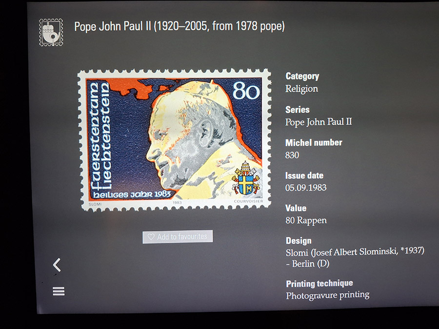 W muzeum znajduje się również stanowisko, gdzie można elektronicznie przejrzeć katalog znaczków wraz ze wszystkimi szczegółami na ich temat