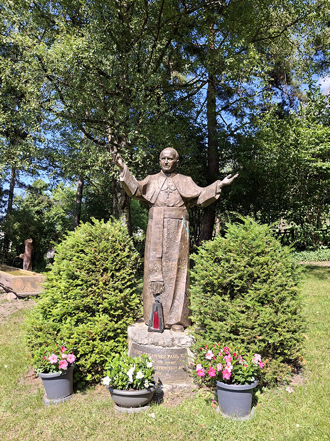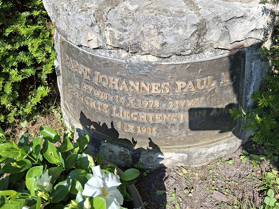 Ostatnim punktem naszej wycieczki po Księstwie Liechtenstein jest miejscowość Schaan. W 2007 roku odsłonięto tu mierzący 2,6 m pomnik przedstawiający papieża Jana Pawła II błogosławiącego wiernych. Pomnik jest upamiętnieniem wizyty Jana Pawła II w tym kraju w 1985 roku. Napis na tablicy głosi: "Jan Paweł II – Papież Polak – Ukochany Syn Ojczyzny – Dar Narodu Polskiego dla Liechtensteinu". Miejsce to jest bardzo urokliwe i klimatyczne. W cieniu drzew zatrzymujemy się na odpoczynek przed długą drogą do domu.
