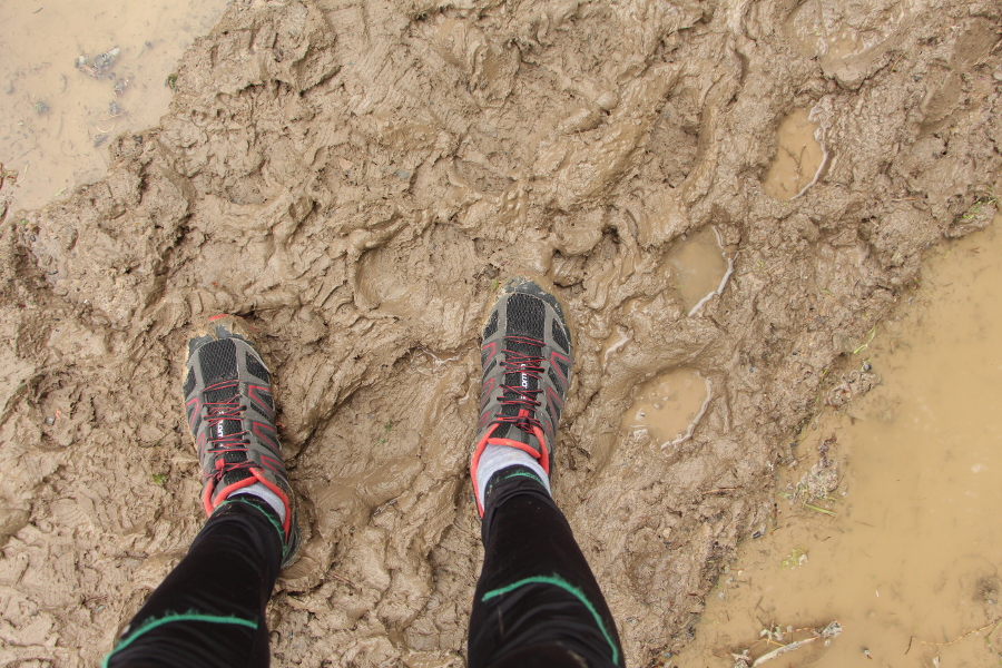 Całe szczęście udało się porozmawiać z kimś, kto nam powiedział, że odwołano kwarantannę. Odetchnęliśmy z ulgą. Będzie można pójść na start dwa razy. Raz z aparatem na zdjęcia oraz drugi raz na sam bieg. No to idziemy! Jak tylko skończył się asfalt zaczął się less. I to less w pełnym tego słowa znaczeniu. Namoknięty przez wielodniowe opady przemienił się w istną kleistą maź. Buty były mokre już po pierwszym kroku, a my próbowaliśmy sobie wyobrazić jak wygląda trasa i wąwozy tego dnia...