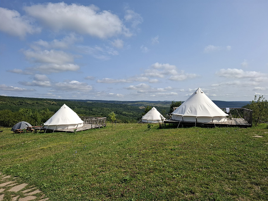 Z pola namiotowego rozciąga się widok na zielone wzgórza pustkowi Mołdawskich
