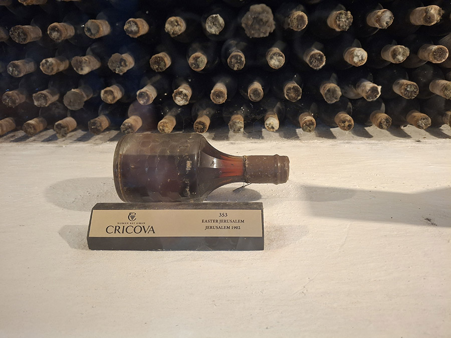 Na ścianie przed wejściem do pomieszczeń zawierających butelki widzimy certyfikat wpisania winiarni do Księgi Rekordów Guinessa