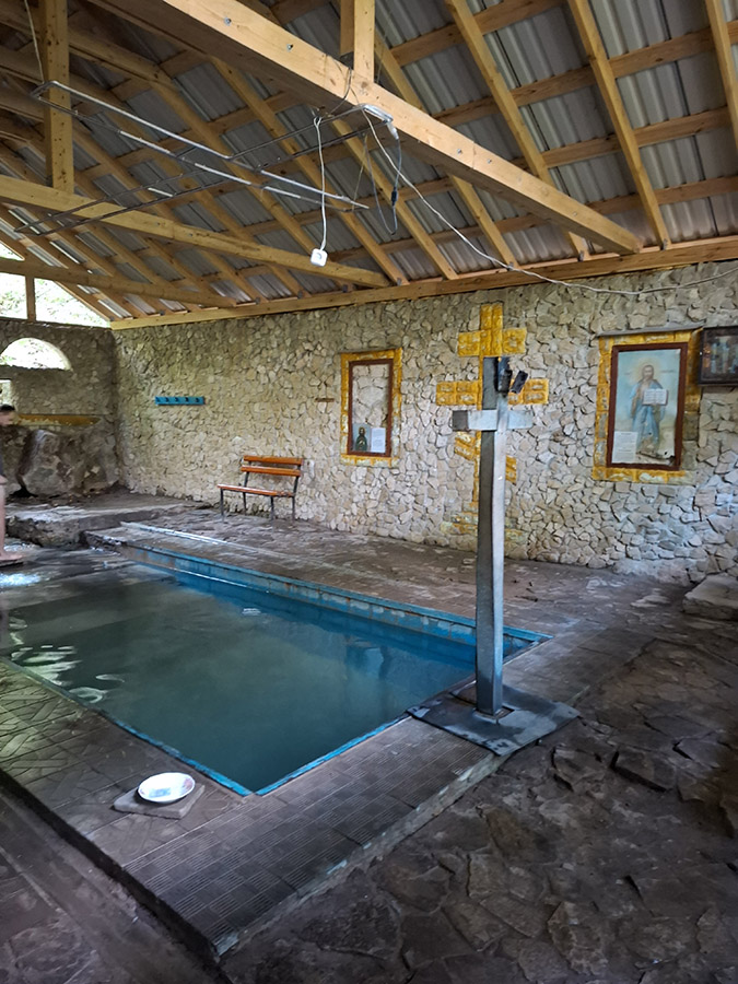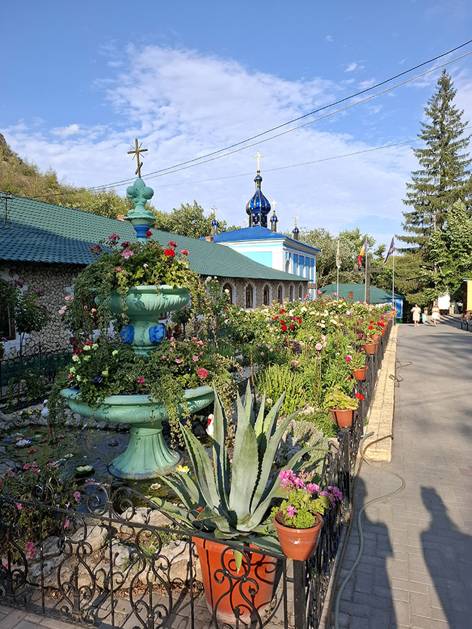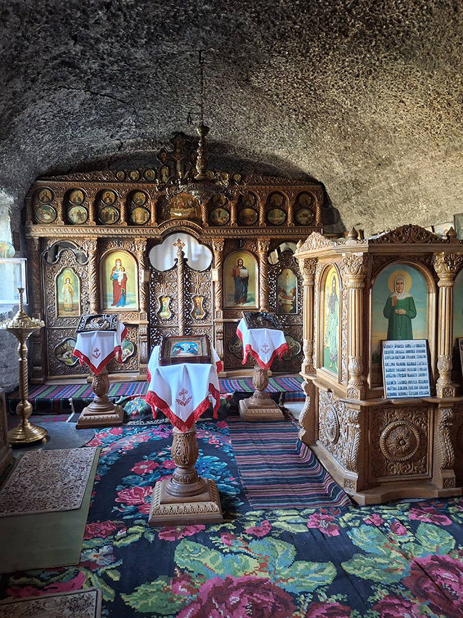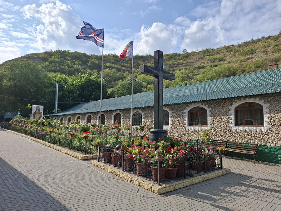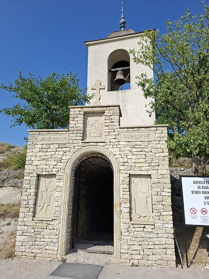 Naprzeciwko krzyża stoi dzwonnica. Pod dzwonnicą znajduje się monastyr Wniebowzięcia Matki Boskiej z XV w. (nazywany monastyr Pestera). Wejście do monastyru jest z drugiej strony, a do środka prowadzi wykuty tunel. Mieszka tu mnich, u którego można kupić różne dewocjonalia i pamiątki. Dalej jest wyjście na skalną półkę, z której rozciąga się widok na okolicę.