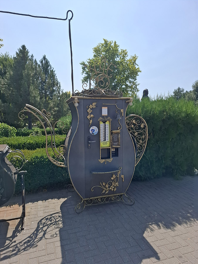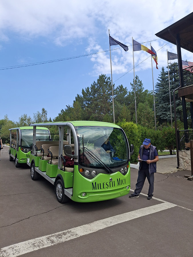 Na terenie kompleksu stoją dwie instagramowe fontanny, z których płynie białe i czerwone wino (a tak naprawdę zabarwiona woda). Milesti Mici zwiedza się meleksami zatrzymując się w kilku punktach, po których oprowadza przewodnik. Pani przewodnik opowiada różne ciekawostki, np. że wielkie beczki po winie czyszczą niskie i drobne kobietki, które wchodzą do środka. Tempo zwiedzania odpowiada nam bardziej niż w Cricova. Jest więcej czasu, żeby sobie chociażby pooglądać pokryte grubą warstwą kurzu leżakujące zbiory butelek.