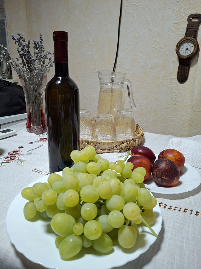 Od właścicielki dostajemy na powitanie winogrona i brzoskwinie.