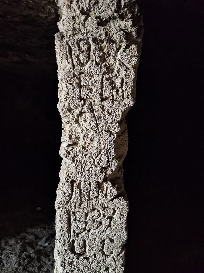 W tunelach Milesti Mici na ścianach oraz suficie widać pozostałości po procesie ich drążenia