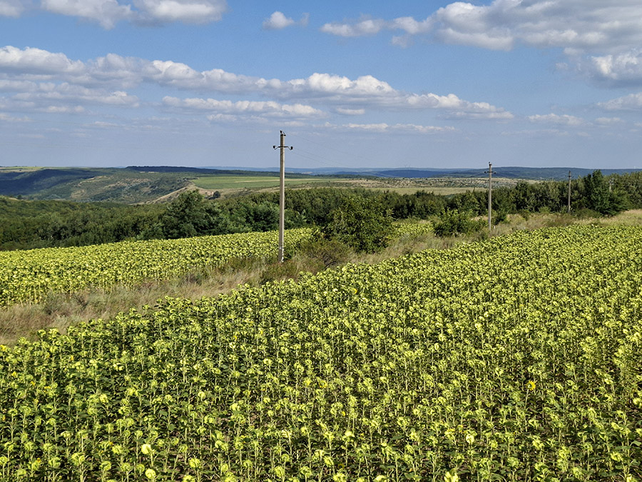 Poza miastami, towarzyszył nam krajobraz, którego wzgórza porastają winorośle, słoneczniki i kukurydza, a wzdłuż dróg rosną orzechy.