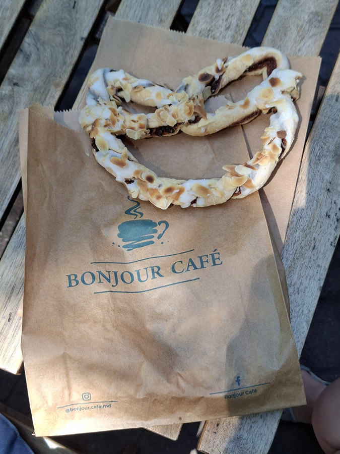 Kiszyniów to najbardziej zielona stolica europejska, czysta i bezpieczna, z pięknymi i ogromnymi parkami, w których znaleźć można klimatyczne kawiarenki. Najbardziej nastrojowa to Bonjour Cafe, w której zrobiliśmy przystanek na precle z różą i migdałami. W Bonjour Cafe można spędzić czas w uroczym wystroju przy melodiach francuskich piosenek, np. Edith Piaf.