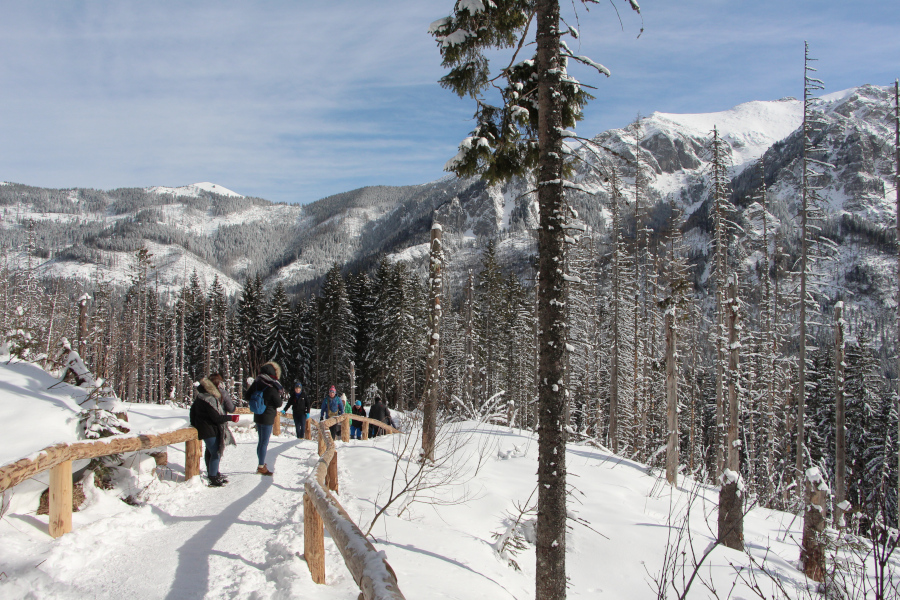 Docieramy na parking w Palenicy Białczańskiej i płacimy 25 zł za cały dzień postoju. Podziwiam Pana pobierającego opłaty za parking, który stoi tego dnia na mrozie od godziny 5:00. Nie zazdroszczę pracy. Płacimy po 5 zł od osoby za wejście na teren Tatrzańskiego Parku Narodowego i ruszamy w blisko 10 kilometrową wędrówkę w jedną stronę.