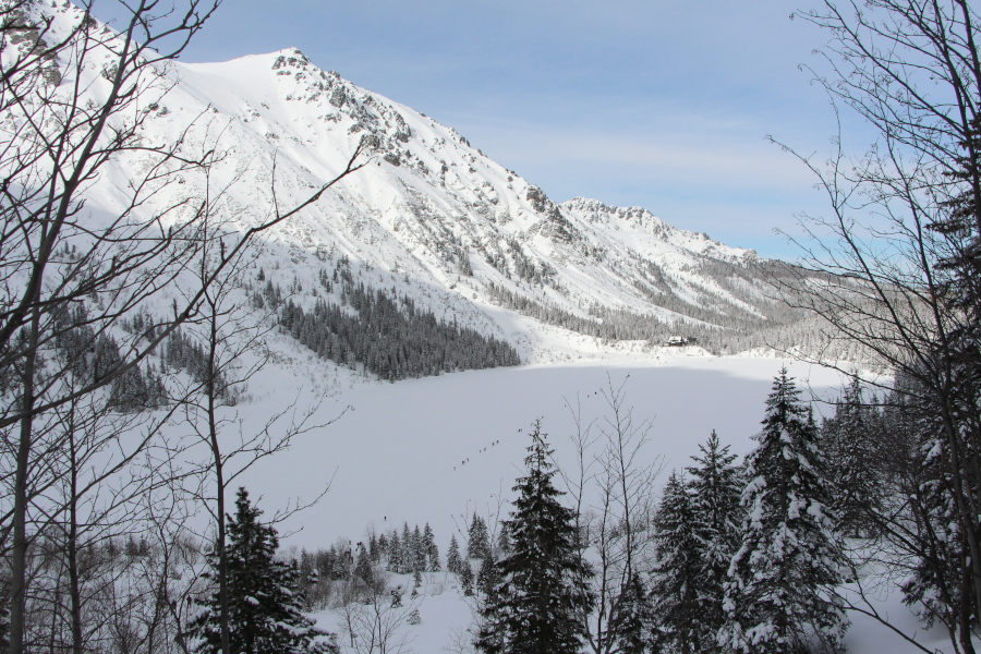 Droga zupełnie mi się nie dłuży. Klimat górskiej zimy bardzo mi przypadł do gustu. Do tego stopnia, że kompletnie nic mi tego dnia nie przeszkadzało. Nawet to, iż na trasie było trochę ludzi. Morskie Oko jest popularne, nawet przy minus 18 stopniach w zimie.