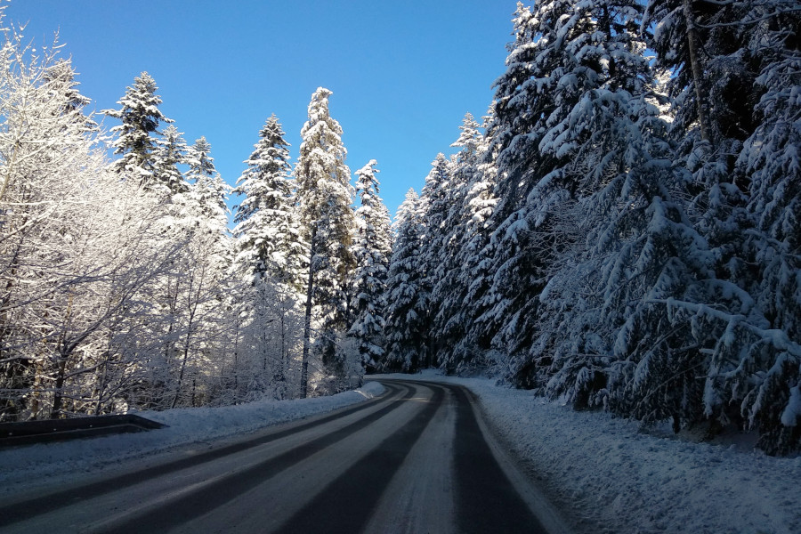 Droga do parkingu w Palenicy Białczańskiej jest kręta i tego dnia dość śliska. Dzień wcześniej spadło tutaj około 10 centymetrów śniegu. Poruszamy się więc bardzo powoli. Na szczęście nie ma wiatru a niebo jest idealnie niebieskie. Wstyd przyznać ale to moja pierwsza wizyta w górach zimą. I już w tym momencie jestem bardzo zauroczony widokami jakie malują się z samochodu.