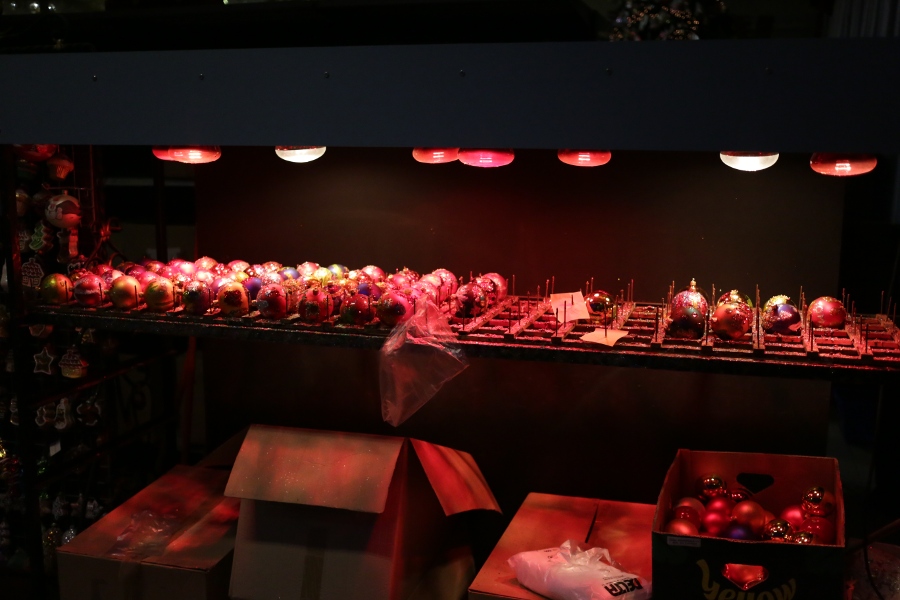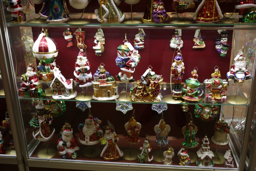 Środek budynku jest przepięknie urządzony. Bombki znajdują się po prostu wszędzie. W gablotach, na stojakach, na ścianach, na choinkach, a nawet na suficie. Wszystko to jest bardzo ładnie oświetlone licznymi źródłami światła. Zgromadzony zbiór bombek obejmuje kilka tysięcy eksponatów... Najbardziej niesamowite jest to, że wszystko tutaj jest ręcznie zdobione. Zabieramy się do oglądania i fotografowania.