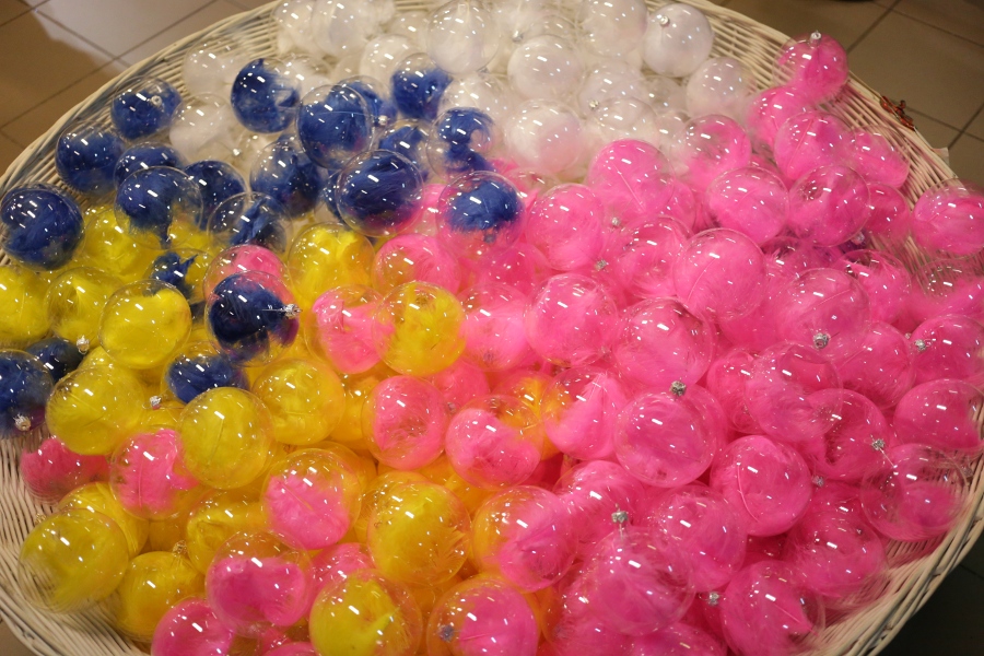 Stanowisko gdzie przygotowane są bańki z napisami oraz dedykacjami...