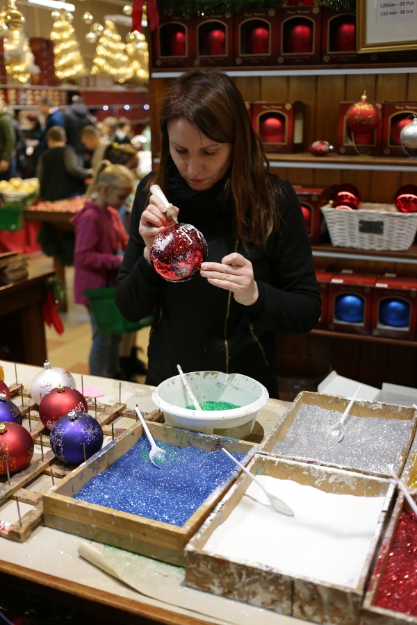 Tuż obok jest sala w której można zobaczyć jak dekorowane są bombki. W sali tej jest zakaz fotografowania. Może to lepiej, gdyż będzie to zachętą do własnego odwiedzenia muzeum. Znajdujące się tam panie dekoratorki, wykonują ręcznie wszystkie prace. Bombki wytwarzają seriami. Ciekawe, jak często zmieniane są wzory. Oczywiście można spróbować swoich sił w dekorowaniu.