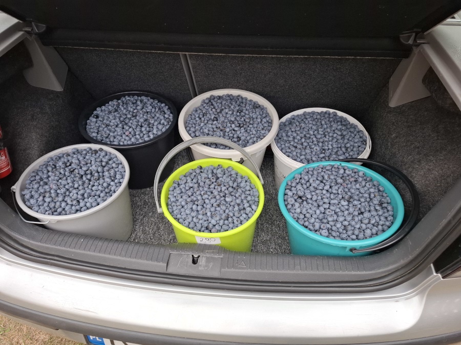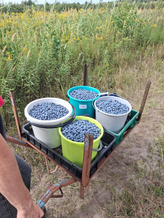 W 2025 roku plantację odwiedzilismy kilkukrotnie. Oprócz tego, że spędziliśmy czas w otoczeniu natury, to do domu wróciliśmy ze sporym zapasem borówki. Zebraliśmy kilkadziesiąt kilogramów!
