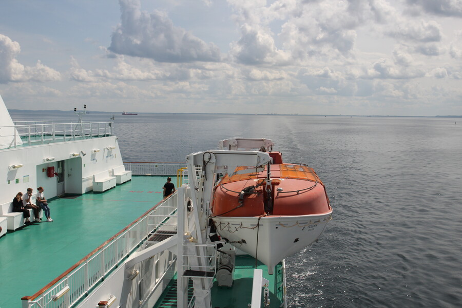 Do dyspozycji pasażerów na promie znajduje się między innymi pokład spacerowy